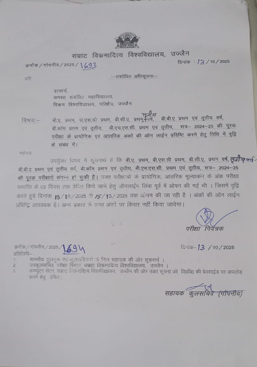 Online marks entry for practical and internal marks for undergraduate I & III Yr. supplementary exam 2024-25 |